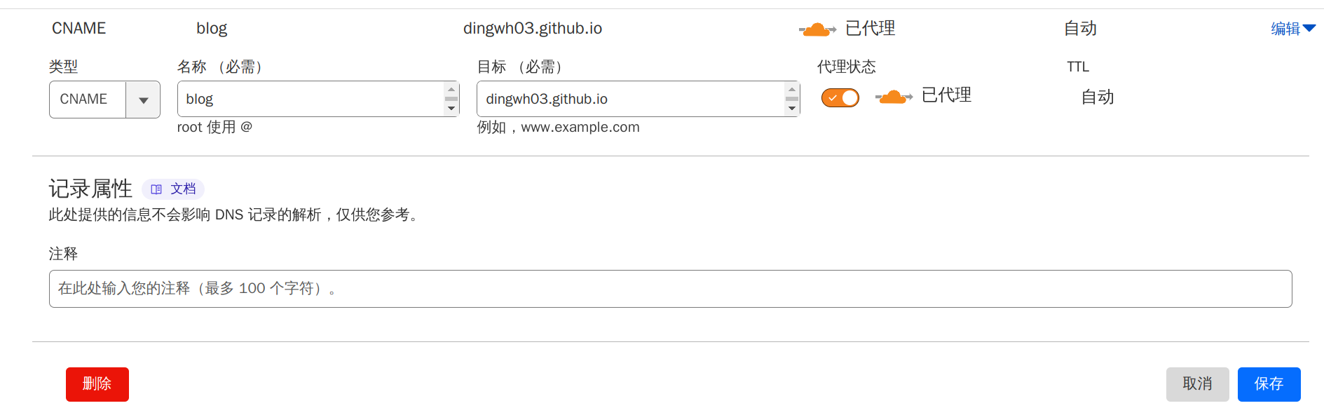 步骤和原理都很简单,在你的域名DNS解析中添加一条CNAME解析指向你的github.io地址,然后在github.io仓库中添加一个CNAME文件,里面内容即是你的域名,在上面的脚本中已经体现出来了。